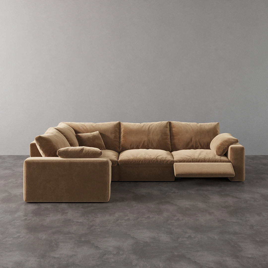 CloudLuxe Corner 5-Piece Modular Recliner Sectional - Almond Velvet