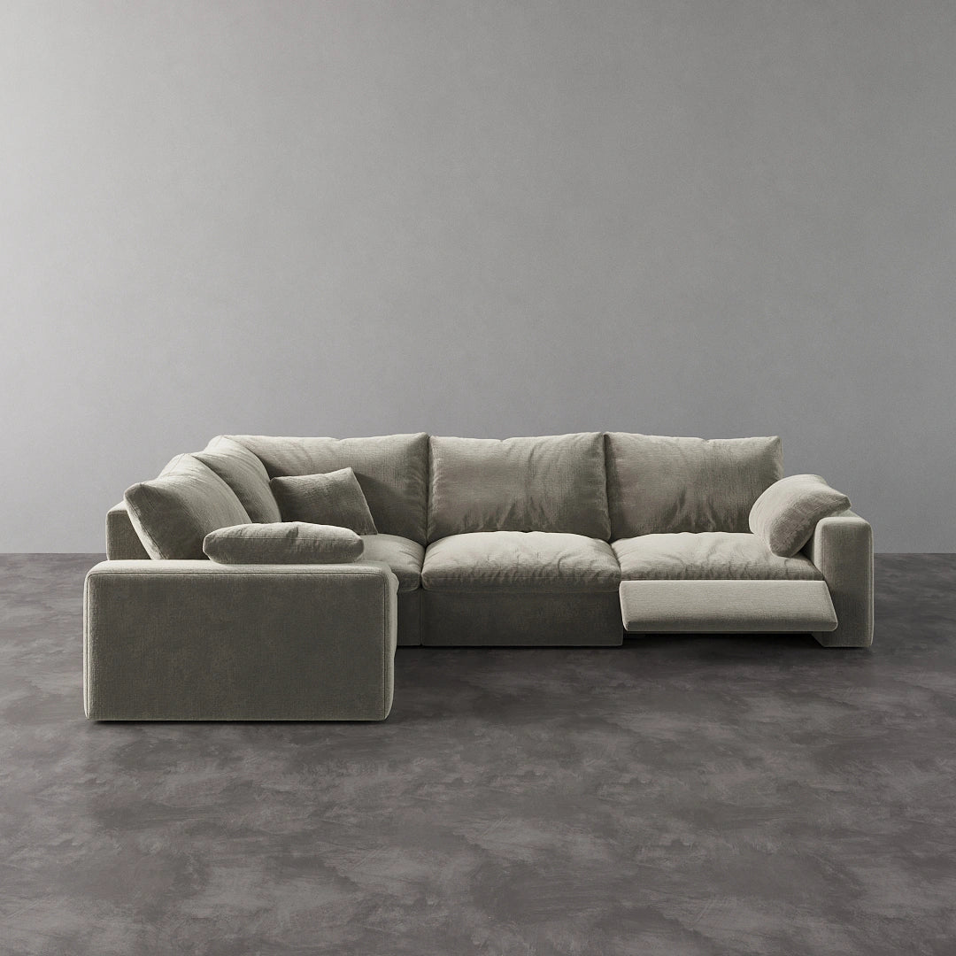 L-Shape 4-Piece Modular Recliner - Fog Grey Velvet