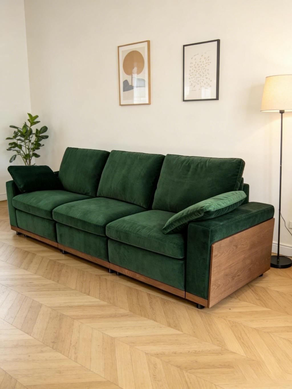 CouldWood 3-Piece Modular Recliner Sofa -  Forest Green Velvet